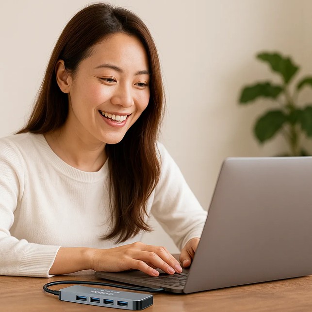 در چنین حالتی، استفاده از هابهای ۷ در ۱ یا بالاتر با پشتیبانی از PD و پورتهای متنوع منطقیتر است. این دسته از هابها میتوانند بهعنوان هستهی اصلی یک ایستگاه کاری قابلحمل عمل کنند؛ کافی است یک کابل USB-C را به لپتاپ وصل کنید تا برق، تصویر و دیتا همزمان منتقل شود.