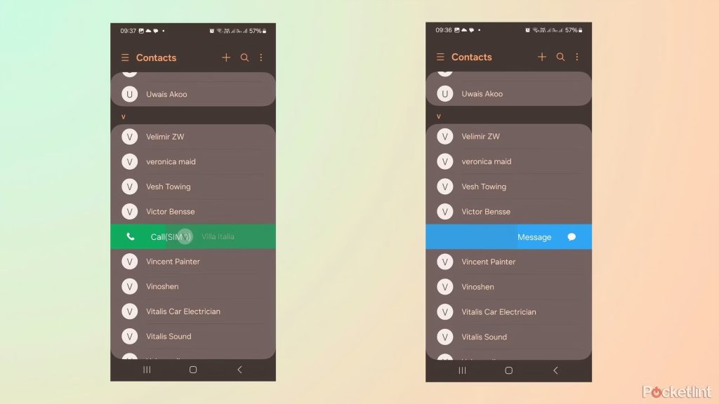 پس از فعالسازی این قابلیت، میتوانید با کشیدن انگشت خود به سمت چپ به مخاطب موردنظر خود پیامک ارسال کرده و با کشیدن انگشت خود به سمت راست با او تماس تلفنی برقرار کنید.