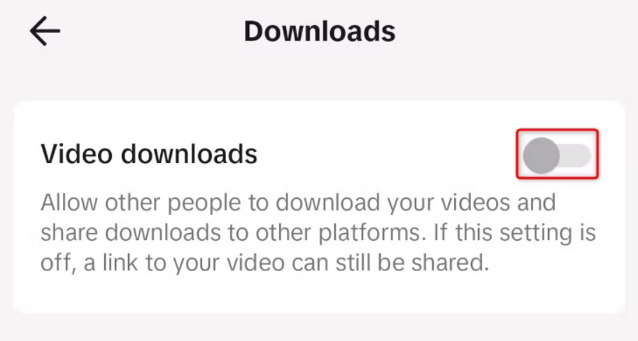 اگر قصد این را دارید تا از ذخیره ویدیوهای تیک تاک خود توسط دیگر افراد جلوگیری کنید، خوشبختانه باید بگوییم در این شبکه اجتماعی گزینهای برای خاموش کردن دانلود محتوای شما توسط افراد دیگر، ارائه میکند. بهطور پیشفرض این گزینه روشن است، اما با خاموش کردن آن، گزینه ذخیره ویدیوهای شما حذف میشود. بدین ترتیب از دانلود ویدیوهای شما توسط دیگر اکانتها جلوگیری خواهد شد.