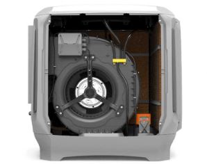 - قدرت این موتور ۱ اسب بخار است و از فن سانتریفیوژی بیصدا برای پرتاب یکنواخت و قدرتمند هوا استفاده میکند.