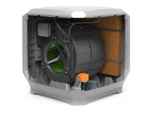 - قلب این کولر را موتور قدرتمند 1 اسب بخاری BLDC تشکیل میدهد که بدون تسمه کار میکند. این نوع موتور راندمان بالایی دارد، صدای بسیار کمی تولید میکند و استهلاک آن در مقایسه با مدلهای تسمهای کمتر است.