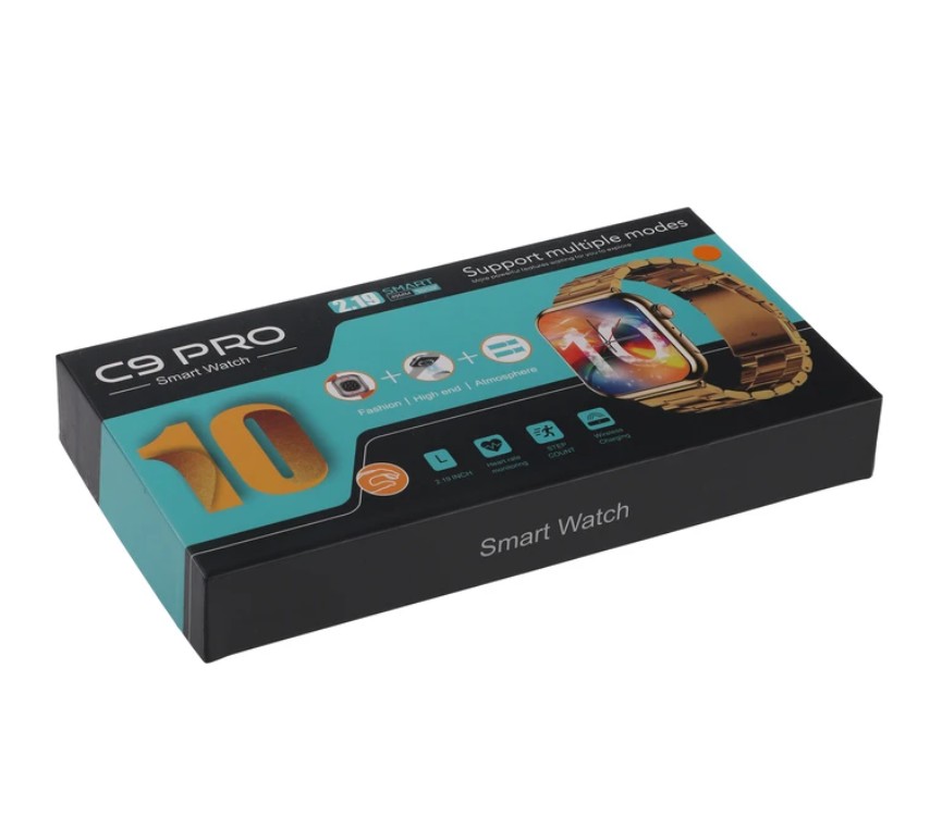 ساعت هوشمند مدل C9 PRO دارای قابلیت های صفحه نمایش رنگی، صفحه نمایش لمسی، قابلیت تغییر طرح ساعت یا تم، قابلیت مکالمه از طریق بلوتوث بند فلز