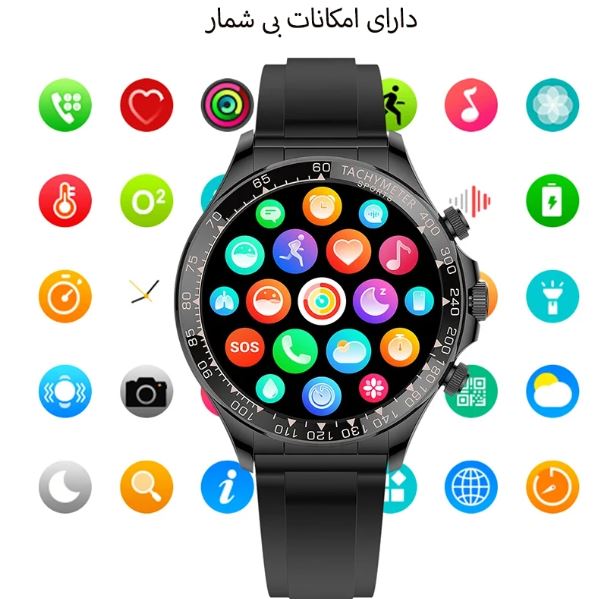 • این ساعت دارای قابلیت‌های متنوعی است که آن را به یک گجت پوشیدنی هوشمند و کاربردی تبدیل می‌کند. صفحه نمایش رنگی با کیفیت بالا، تصاویر و متن‌ها را با وضوح و رنگ‌های زنده نمایش می‌دهد و صفحه لمسی امکان تعامل آسان و سریع با ساعت را فراهم می‌کند. امکان کنترل پخش موسیقی از طریق ساعت، بدون نیاز به استفاده از گوشی وجود دارد و می‌توانید نام آهنگ، خواننده و تنظیم صدا را مشاهده کنید. ساعت قابلیت سنجش سطح اکسیژن خون را دارد که می‌تواند به شما در نظارت بر سلامت خود کمک کند. همچنین، می‌توانید از طریق بلوتوث با ساعت مکالمه کنید، بدون اینکه نیاز به استفاده از گوشی داشته باشید. پشتیبانی کامل از زبان فارسی در منو و سیستم‌عامل نیز کار با ساعت را برای کاربران فارسی‌زبان آسان می‌کند. این قابلیت‌ها در کنار هم، تجربه‌ای لذت‌بخش و کارآمد را برای شما فراهم می‌کنند.