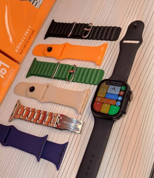 - شارژ دستگاه از طریق کابل مغناطیسی صورت میگیرد. ارزش خرید این محصول با توجه به اقلام همراه آن بسیار بالا میرود، زیرا علاوه بر خود ساعت، ۷ عدد بند متنوع شامل بند فلزی طرح رولکس و بندهای سیلیکونی، و همچنین یک عدد کابل شارژ درون جعبه قرار دارد.