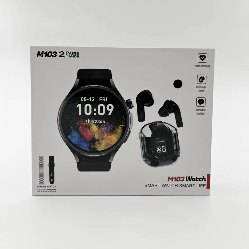 ساعت هوشمند 44 میلی متری مدل M103 با بند سلیکونی به همراه هندزفری بیسیم