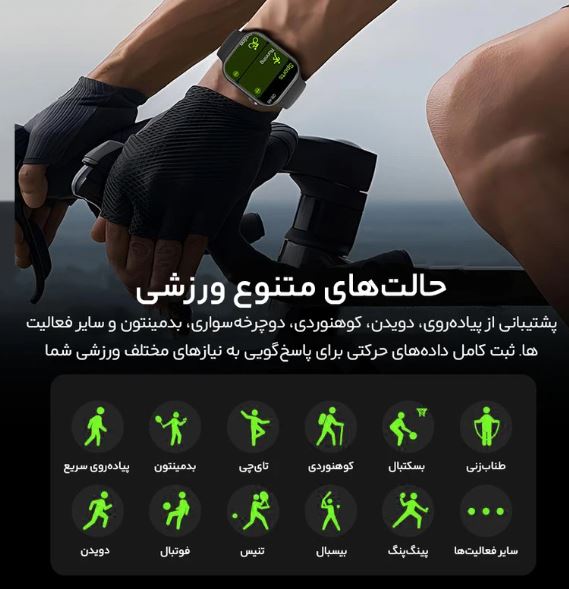 - این مدل از ساعت هوشمند امکانات کاربردی متعددی را فراهم میکند که ارتباط با دنیای دیجیتال را آسانتر میسازد. از طریق نسخه بلوتوث ۵.۴، اتصال پایدار و کممصرفی با گوشی برقرار میشود که امکان مکالمه مستقیم از طریق ساعت را میسر میسازد. از دیگر قابلیتهای کلیدی آن میتوان به کنترل پخش موسیقی، نمایش اعلانها از پیامکها و اپلیکیشنهای اجتماعی اشاره کرد. همچنین، این دستگاه از زبان فارسی در منو و سیستمعامل پشتیبانی میکند و امکانات شخصیسازی شامل تغییر واچفیس (طرح ساعت) و دسترسی به یک ماشین حساب داخلی نیز در آن تعبیه شده است.