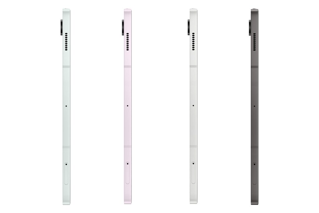 سامسونگ برای این تبلت از بدنهی یکپارچه فلزی با فریم آلومینیومی استفاده کرده که هم حس لوکسبودن را منتقل میکند و هم استحکام بالایی دارد. Tab S9 FE با ضخامت تنها 6.5 میلیمتر و وزن حدود 523 گرم (در مدل Wi-Fi) تجربهای راحت و خوشدست ارائه میدهد. این دستگاه در رنگهای جذاب سبز نعنایی، خاکستری، بنفش روشن و نقرهای روانه بازار شده تا سلیقههای مختلف را پوشش دهد.