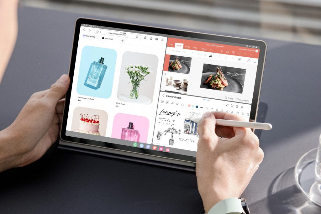 وجود چهار اسپیکر استریوی تیون‌شده توسط AKG تجربه صوتی‌ای فوق‌العاده قدرتمند، شفاف و فراگیر فراهم می‌کند. این موضوع تبلت را برای فیلم دیدن، موسیقی و بازی ایده‌آل می‌کند.