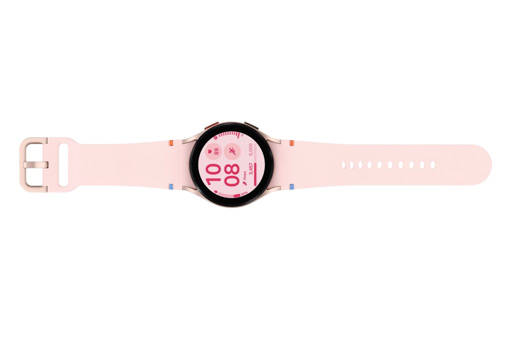 این ساعت دارای ابعاد 40.4 در 39.3 در 9.8 میلیمتر و وزن سبک 26.6 گرم است که استفاده طولانیمدت از آن را راحت میکند. فریم آلومینیومی در کنار محافظ صفحه کریستال سافایر، دوام بالایی را فراهم کرده است. گلکسی واچ FE دارای گواهی IP68 برای مقاومت در برابر آب و گردوغبار، مقاومت تا عمق 50 متر (فشار 5 اتمسفر) و استاندارد نظامی MIL-STD-810H است. این مدل در رنگهای مشکی، نقرهای و صورتی عرضه میشود.