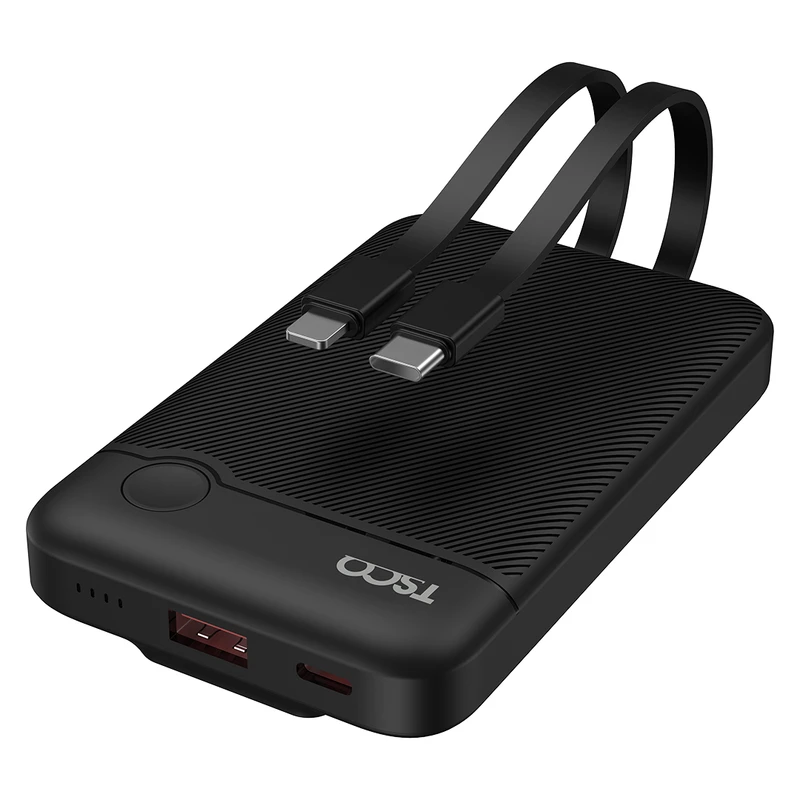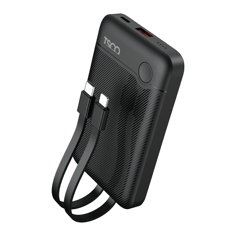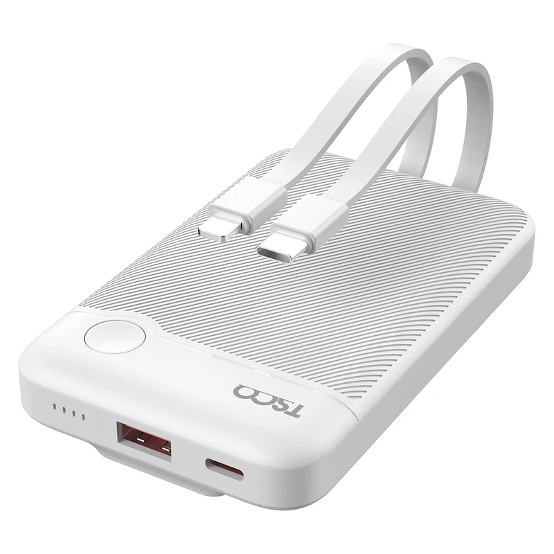 پاور بانک تسکو TP 1011 دارای دو درگاه خروجی USB-A و USB-C بوده و همچنین به کابلهای متصل Type-C و Lightning (غیرقابل جدا شدن) مجهز است تا بدون نیاز به حمل کابل اضافی بتوانید دستگاههای مختلف را شارژ کنید. این مدل از فناوریهای QC 2، QC 3، PD 3.0، Adaptive Fast Charging و Standard Charging پشتیبانی میکند و امکان شارژ همزمان چند دستگاه را فراهم میسازد.