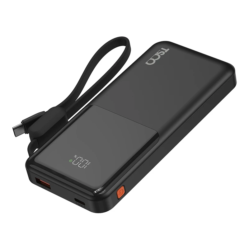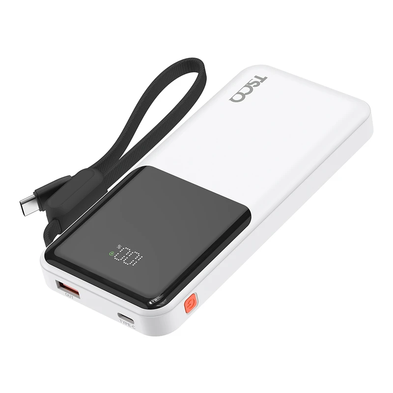 پاور بانک تسکو TP 1013 با ابعاد 15 × 7 × 2 سانتیمتر و وزن 250 گرم، طراحی جمعوجور و جیبی دارد و بهراحتی در کیف یا کولهپشتی قرار میگیرد. بدنه آن از پلاستیک ABS ساخته شده که در کنار وزن مناسب، استحکام قابل قبولی را ارائه میدهد. وجود کابل Type-C متصل و بند دستی، حمل و استفاده از دستگاه را آسانتر کرده است. همچنین نمایشگر LCD روی بدنه، میزان دقیق شارژ باقیمانده را نشان میدهد.