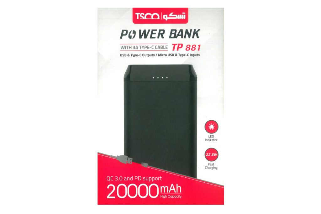 پاور بانک تسکو TP 881 با ظرفیت 20000 میلیآمپر ساعت