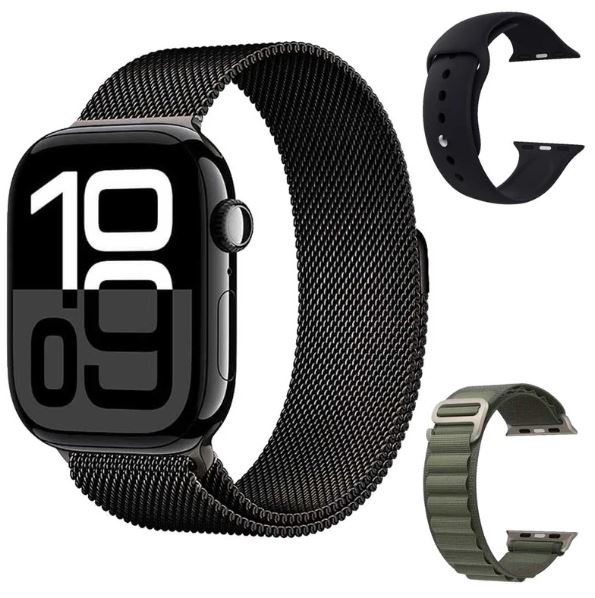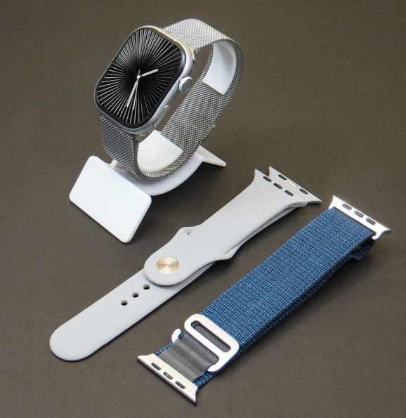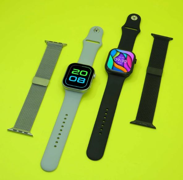 • این ساعت هوشمند، مدلی طرح اپل بوده و از نظر ظاهر و طراحی، شباهت زیادی به مدل‌های اصلی دارد. با بدنه‌ای فلزی با کیفیت و جذاب، حس یک ساعت گران‌قیمت و حرفه‌ای را به کاربر منتقل می‌کند. درون بسته‌بندی، علاوه بر ساعت، چند بند مختلف از جنس فلز و سیلیکون نیز وجود دارد تا بتوانید ظاهر آن را مطابق سلیقه خود تغییر دهید.