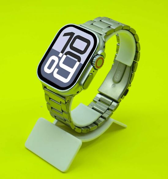 • این ساعت هوشمند با طراحی زیبا و بدنه فلزی، گزینه‌ای شیک و کاربردی برای استفاده روزمره آقایان و بانوان است. ظاهر آن به مدل‌های اصلی اپل واچ شباهت زیادی دارد و ترکیب فلز با بند استیل یا سیلیکونی، حس لوکس و باکیفیتی را منتقل می‌کند. با وزن حدود ۲۰۰ گرم و فرم مستطیلی، هم مناسب دست بانوان است و هم برای آقایان جلوه‌ای حرفه‌ای و جذاب دارد.