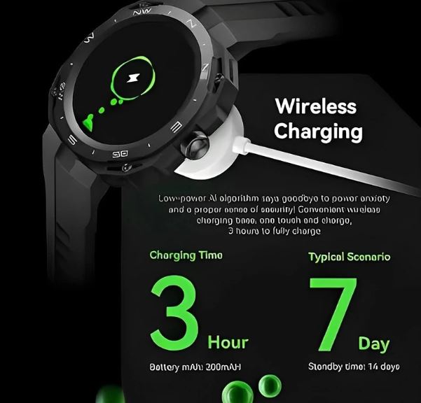 - یکی از ویژگیهای کاربردی این ساعت، شارژ بیسیم است. این فناوری باعث میشود بدون نیاز به کابل و درگیری با پورتها، فقط با قرار دادن ساعت روی پایه شارژ مخصوص، انرژی لازم را تأمین کنید. بسته به مدل و نوع استفاده، معمولا باتری ساعت توانایی کار تا چند روز با یک بار شارژ را دارد.