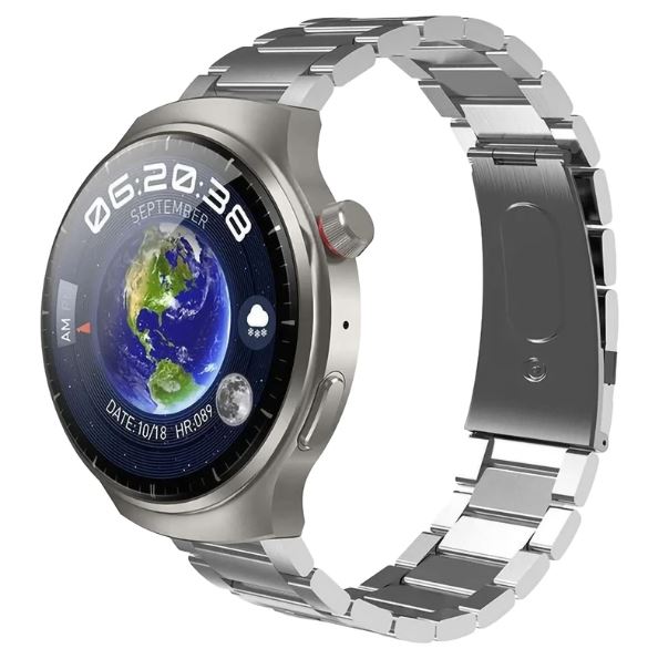 • این ساعت هوشمند از نظر طراحی بسیار چشم‌گیر است. با فرم صفحه گرد و طراحی کلاسیک خود، حس ساعت‌های لوکس را منتقل می‌کند.