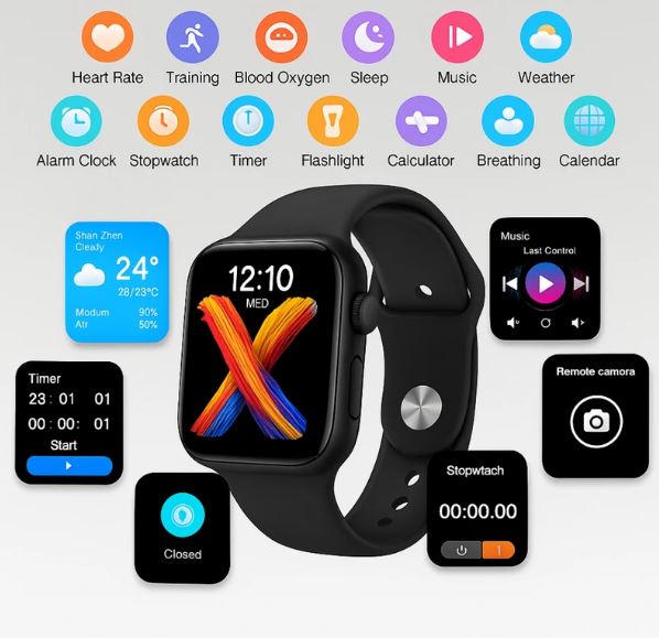 امکانات ورزشی: پشتیبانی از تمرینات ورزشی مختلف و محاسبه مسافت طی شده.