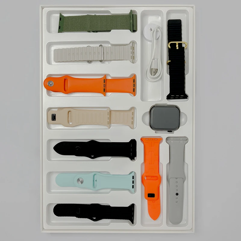 • فرم و جنس بدنه: ساعت دارای فرم صفحه مستطیل است که ظاهری مدرن و رایج در ساعت‌های هوشمند امروزی دارد. نکته مثبت، استفاده از جنس بدنه فلزی است که دوام و حس لوکس‌تری نسبت به پلاستیک یا آلیاژهای سبک‌تر به دستگاه می‌بخشد.