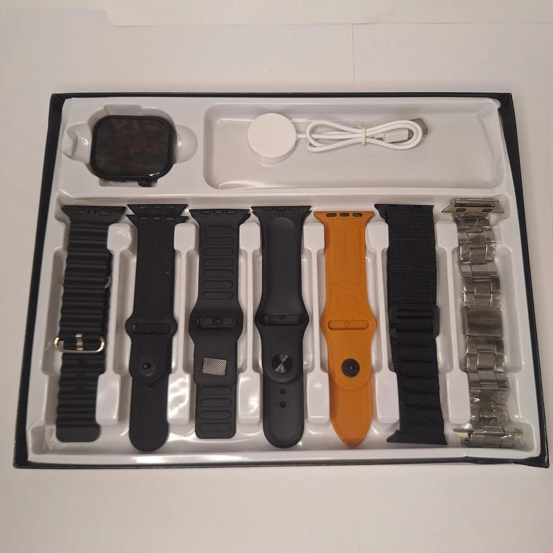 اقلام همراه: این ساعت با ۷ بند متنوع (سیلیکونی، استیل و پارچه‌ای) عرضه می‌شود تا بتوانید آن را با هر لباسی ست کنید و از راحتی و استایل دلخواه خود لذت ببرید.
