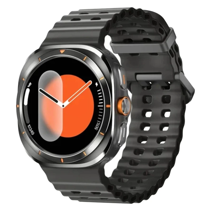 - یکی از مزایای مهم این مدل، قابلیت تعویض بند است که به شما اجازه میدهد با توجه به استایل و موقعیت مکانی خود، ظاهر ساعت را تغییر دهید. بند پیشفرض از جنس سیلیکون با نوع قفل سگکی ساده است که راحتی و ایمنی در هنگام استفاده ورزشی یا روزمره را تضمین میکند.
