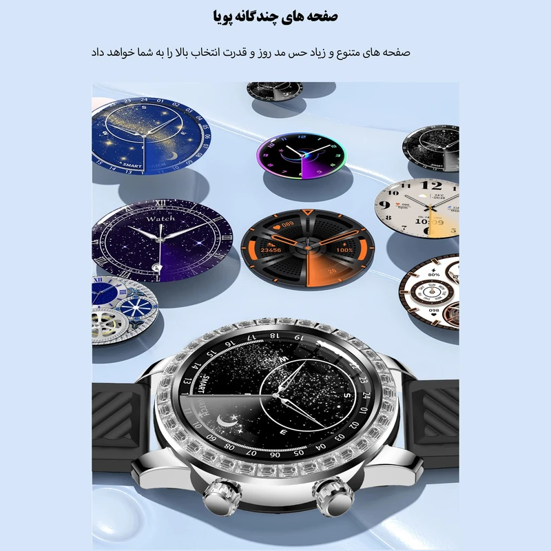 امکانات شخصیسازی: کاربران میتوانند ظاهر ساعت را از طریق تغییر طرح یا تم ساعت متناسب با سلیقه خود تنظیم کنند و همچنین از پشتیبانی کامل زبان فارسی در منو و سیستمعامل بهرهمند شوند.