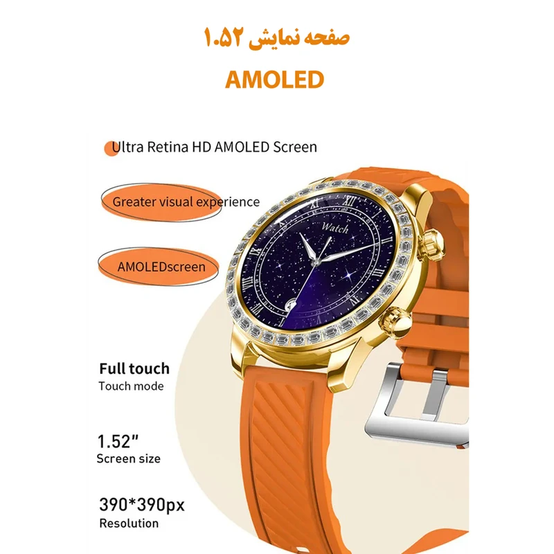 ابعاد و وضوح: اندازه نمایشگر ۱.۵۲ اینچ است و با رزولوشن ۳۹۰*۳۹۰ پیکسل، تصویری واضح ارائه میدهد.