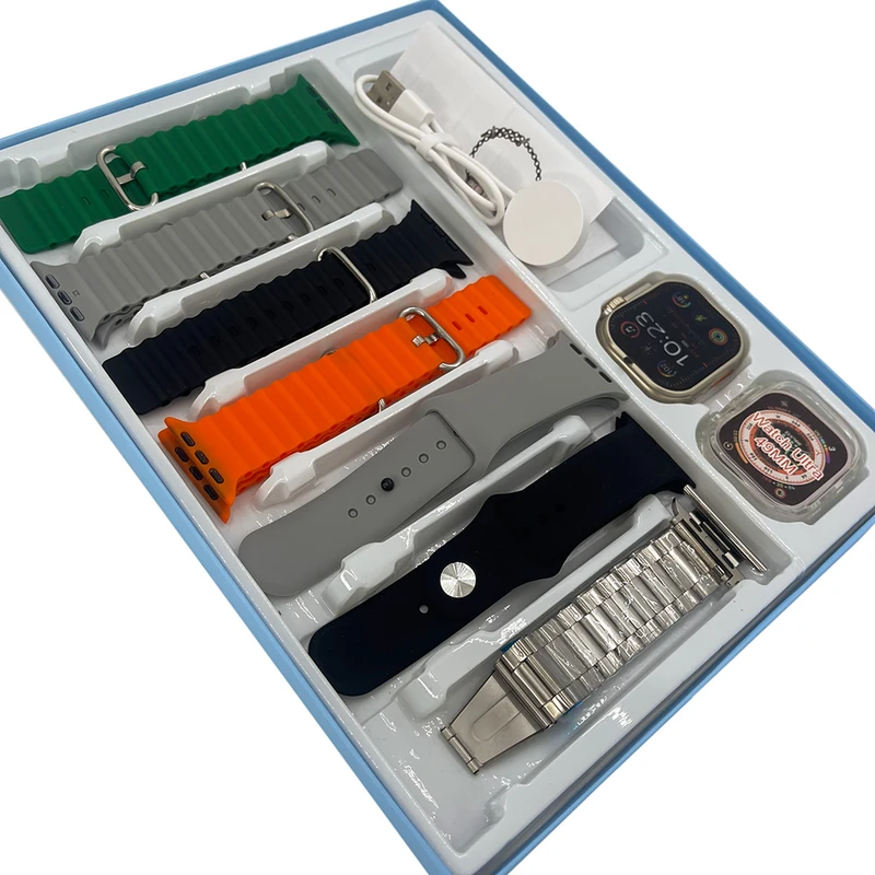 • دارای هفت بند شامل یک بند فلزی ساده، دو بند مشکی و طوسی با قفل پینی، و چهار بند رنگی (نارنجی، طوسی، سبز، مشکی) با قفل سگکی ساده. رنگ بدنه نقره‌ای جلوه‌ای مینیمال و جذاب دارد که با تمامی بندها هماهنگ می‌شود.