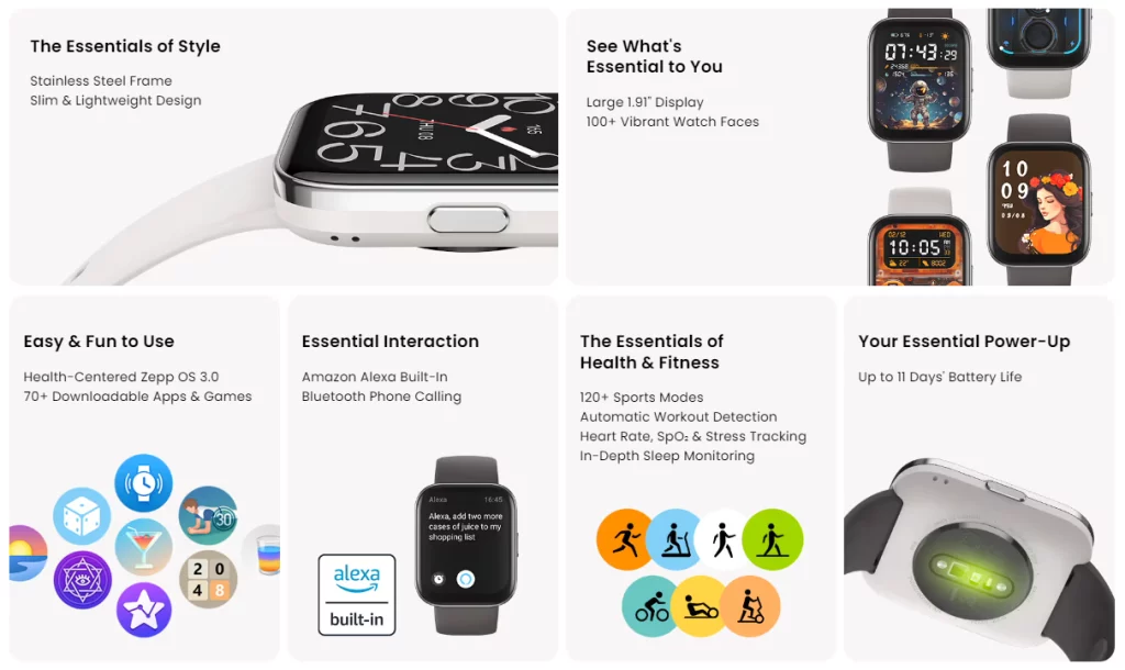 مشخصات کلیدی ساعت هوشمند آمازفیت BIP 5 Unity
