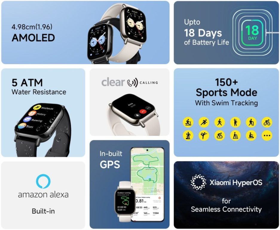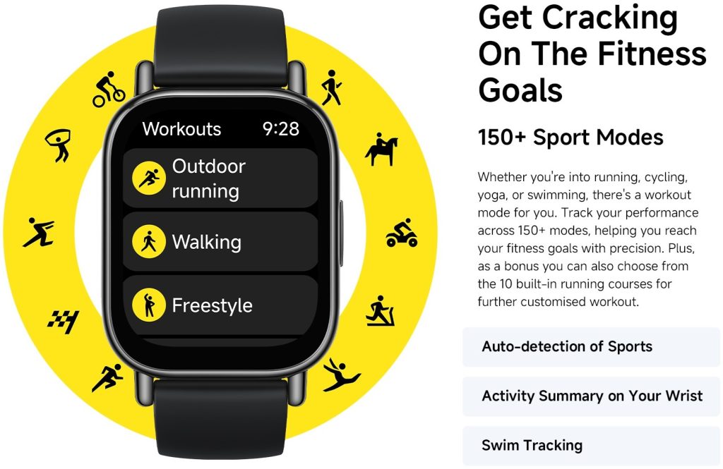 علاوه بر این، این ساعت هوشمند به سنسورهای «ضربان قلب و ردیاب سطح اکسیژن خون (SpO2)» مجهز بوده و از بیش از 150 تمرین ورزشی در محیطهای باز و بسته پشتیبانی میکند. همچنین این گجت به واسطه دریافت گواهی 5 ATM در برابر آب مقاوم بوده و امکان استفاده از آن در ورزشهای آبی نظیر «شنا» و ارزیابی عملکرد در هنگام شنا را در اختیار کاربران خود قرار میدهد.