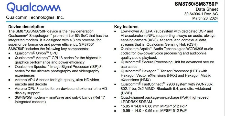 با نزدیک شدن به مراسم رونمایی رسمی از هستههای Oryon پردازنده مرکزی (CPU) کوالکام و تراشه اسنپدراگون 8 نسل 4، هر روزه جزئیات تازهای چیپست پرچمدار آتی این کمپانی به بیرون درز میکند. اکنون با توجه به یک برگه مشخصات فاششده از این تراشه، به نظر میرسد کوالکام قصد دارد چیپست پرچمدار خود را در دو مدل «SM8750» و «SM8750P» روانه بازار کند. در حالیکه انتظار میرود مدل «SM8750» در گوشیهای پرچمدار «شیائومی، آنر، ویوو، اوپو، ایسوس، وان پلاس، iQOO و ZTE» به کار گرفته شود، پیشبینی میشود مدل دارای پسوند P (که احتمالاً مخفف Performance/ عملکرد است و مشابه با تراشههای دارای پسوند AC اسنپدراگون عملکرد قدرتمندتری را ارائه میدهد) بهصورت انحصاری به پرچمدار آتی سامسونگ، یعنی گلکسی S25 اولترا، تعلق داده شود.