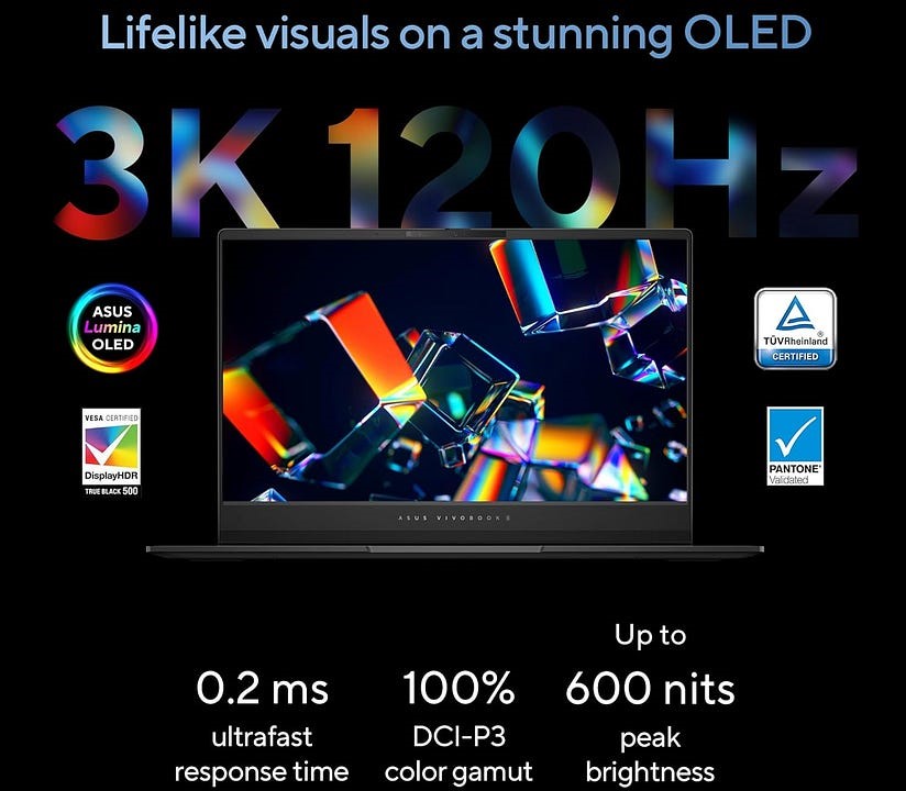لپتاپهای ویووبوک S 15 اولد و S1 16 اولد ایسوس به ترتیب دارای نمایشگرهای 15.6 و 16 اینچی با رزولوشنهای 3K و 3.2K هستند. هر دو نمایشگر «نرخ تازهسازی 120 هرتزی» و «حداکثر روشنایی 600 نیتی» را ارائه داده و از استاندارد «DisplayHDR True Black 600» تاییدشده توسط گواهینامه VESA پشتیبانی میکنند.