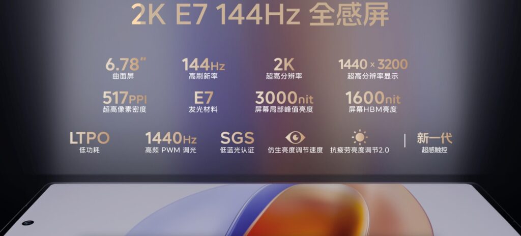 اندازه صفحه نمایش این دستگاه همان 6.78 اینچ است اما رزولوشن آن کمتر و 1260 در 2899 پیکسل و نرخ تازهسازی آن حداکثر 144 هرتز است. علاوه بر این، دو گزینه باتری، یکی باتری 5000 میلیآمپر ساعتی و دیگری باتری 4880 میلیآمپر ساعتی ( تاکنون تفاوت قیمتی دو گزینه مطرح نشده است) برای این گوشی در اختیار کاربران قرار داده شده است. هر دو باتری از قابلیت شارژ سیمی 120 واتی پشتیبانی میکنند اما امکان پشتیبانی از شارژ بیسیم را ندارند.