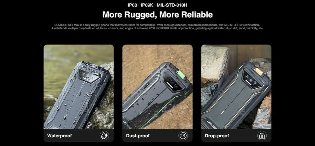 لازم به ذکر است دوجی S41 پلاس از استاندارد IP68 (مقاومت در برابر آب، گرد و غبار) و دوجی S41 مکس از استاندارد IP69K (مقاومت در برابر پاشش آب نازل جکوزی!) بهره میبرند. علاوه بر این، به واسطه پشتیبانی از استاندارد مقاومت MIL-STD-810H هر دو گوشی در برابر سقوط از ارتفاع نیز مقاوم هستند. با این حال، طبق استانداردهای کمپانی دوجه، بدنه مقاوم این دو گوشی تاثیر چندان چشمگیری بر وزن آنها نداشته است و هر دو دستگاه وزنی در حدود 262 گرم دارند.