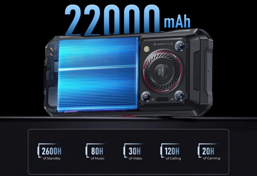 اوکیتل WP33 پرو به یک باتری غولپیکر 22000 میلیآمپر ساعتی مجهز است و از شارژ سیمی 33 واتی پشتیبانی میکند. لازم به ذکر است، به واسطه ظرفیت بسیار زیاد باتری این دستگاه، برای شارژ کامل آن (0 تا 100 درصد) به 5 ساعت نیاز دارید!