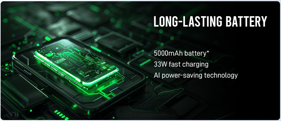 - بهرهمندی از باتری 6000 میلیآمپر ساعتی با پشتیبانی از شارژ سریع (سیمی) با سرعت 33 واتی