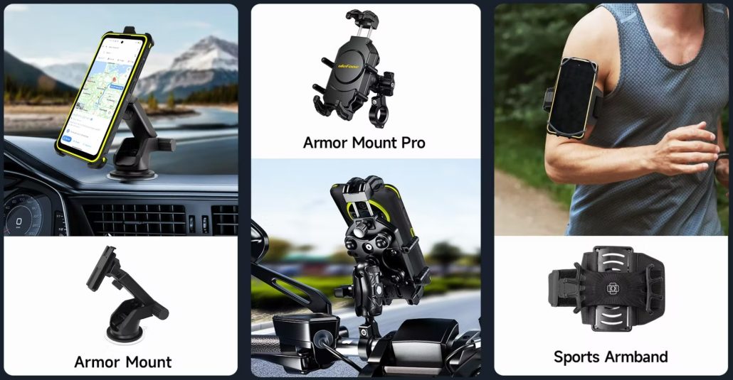 همچنین لازم به ذکر است که یولفون تجهیزات جانبی منحصربهفردی از جمله «یک گیره با قابلیت چرخش 360 درجهای (برای قاب پشتی)، یک کارابین (قلاب) برای حمل آسان دستگاه، دو هولدر (نگهدارنده) گوشی برای چسباندن آن به سطوح مختلف (مثلاً دوچرخه) با نامهای آرمور مونت و آرمور مونت پرو و یک بازوبند برای چسابندن گوشی به بازو در هنگام ورزش» را برای این گوشی جانسخت در نظر گرفته است.