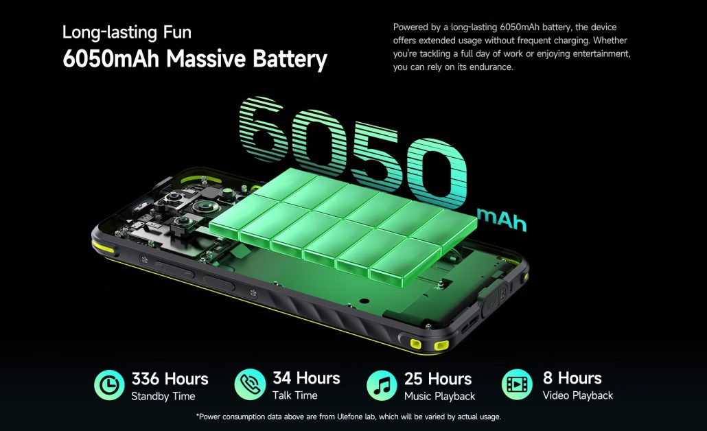 یولفون آرمور X31 پرو به یک باتری «6050 میلیآمپر ساعتی» مجهز بوده و از شارژ سیمی با سرعت «18 واتی» پشتیبانی میکند.