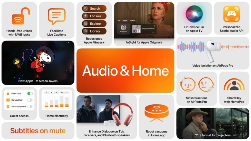 اپل همچنین بهروزرسانی سیستمعاملی جدیدی را برای کاربران ایرپادز پرو (نسل دوم) معرفی کرد. کاربران بهلطف این آپدیت میتوانند با استفاده از حرکات سر به سیری پاسخ دهند؛ تکان دادن سر به سمت بالا و پایین برای بله است و تکان به چپ و راست برای نه. این قابلیت جدید هنگام پاسخ دادن به تماسها و پیامها و موارد مشابهی دیگر کاربردی خواهد بود. ایرپادز پرو همچنین از قابلیت عایق صوتی موجود در آیفون، مک و آیپد بهرهمند میشود که ضمن حذف نویز پسزمینه، صدای تماسگیرنده را ایزوله و تقویت میکند. صدای فضایی (Spatial) شخصیسازیشده در بازیها برای ایرپادز (نسل سوم)، ایرپادز پرو و ایرپادز مکس در دسترس قرار خواهند گرفت.