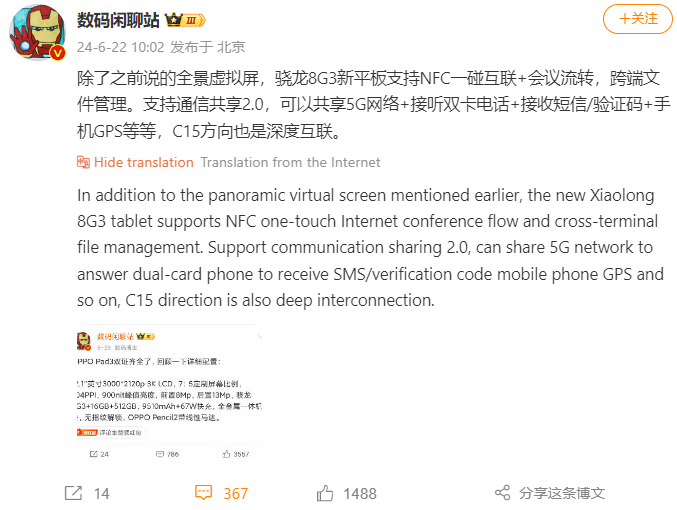 ماه گذشته اکانت دیجیتال چت استیشن (Digital Chat Station، افشاگر تکنولوژی) برخی از مشخصات کلیدی تبلت اوپو پد 3 را در اختیار علاقهمندان قرار داد. اکنون این اکانت افشاگری اطلاعات بیشتری را در رابطه با این دستگاه فاش کرده و ادعا میکند اوپو تراشه پرچمدار کوالکام، یعنی اسنپدراگون 8 نسل 3، را برای این تبلت در نظر گرفته است.