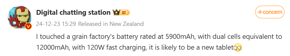 در حالیکه تاکنون نوع و مدل این دستگاه بهصورت رسمی تأیید نشده است، اما قاعدتاً این مشخصات به یک تبلت جدید از شیائومی تعلق خواهد داشت. این در حالی است که کمی پیشتر گزارشاتی مبنی بر تلاش شیائومی برای توسعه یک تبلت با ظاهری مشابه به تبلتهای سری شیائومی پد 6 و مجهز به یک «صفحهنمایش اولد 11 اینچی با نرخ نوسازی 144 هرتزی»، «تراشه اسنپدراگون پرچمدار کوالکام» و «رم دارای حداکثر ظرفیت 24 گیگابایتی» با پشتیبانی از «سرعت شارژ 120 واتی» در سال 2025 میلادی منتشر شده است. از این رو احتمال میرود محصول موردنظر DCS در این افشاگری، در واقع همان تبلت اولد 2025 شیائومی باشد.